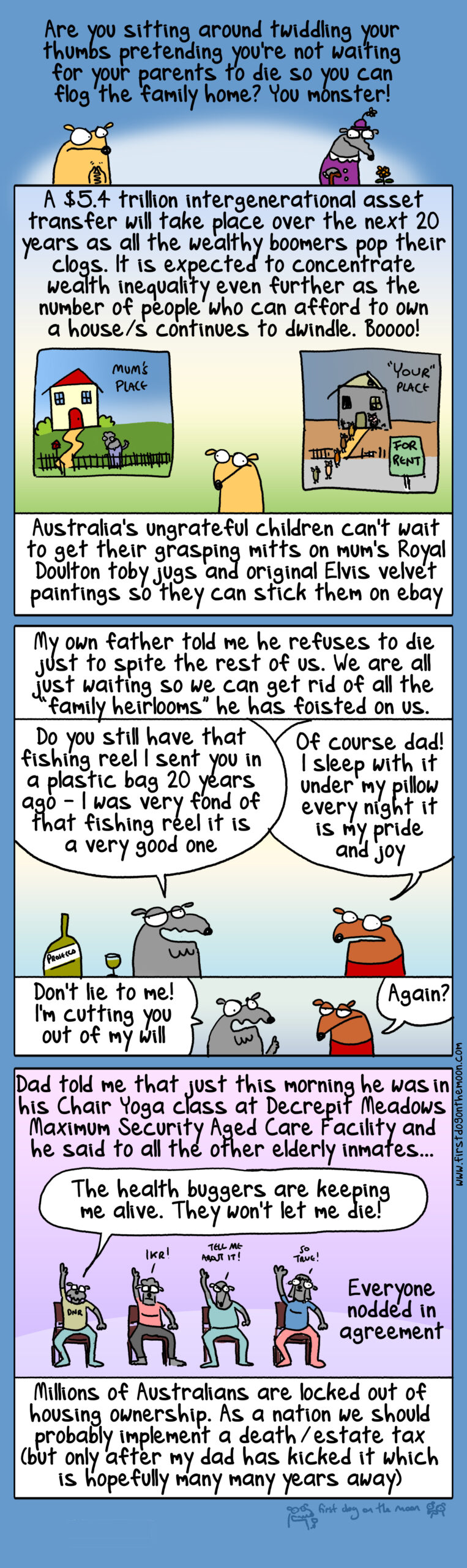 Cartoon: Intergenerational asset transfer? Get out of the way dad!